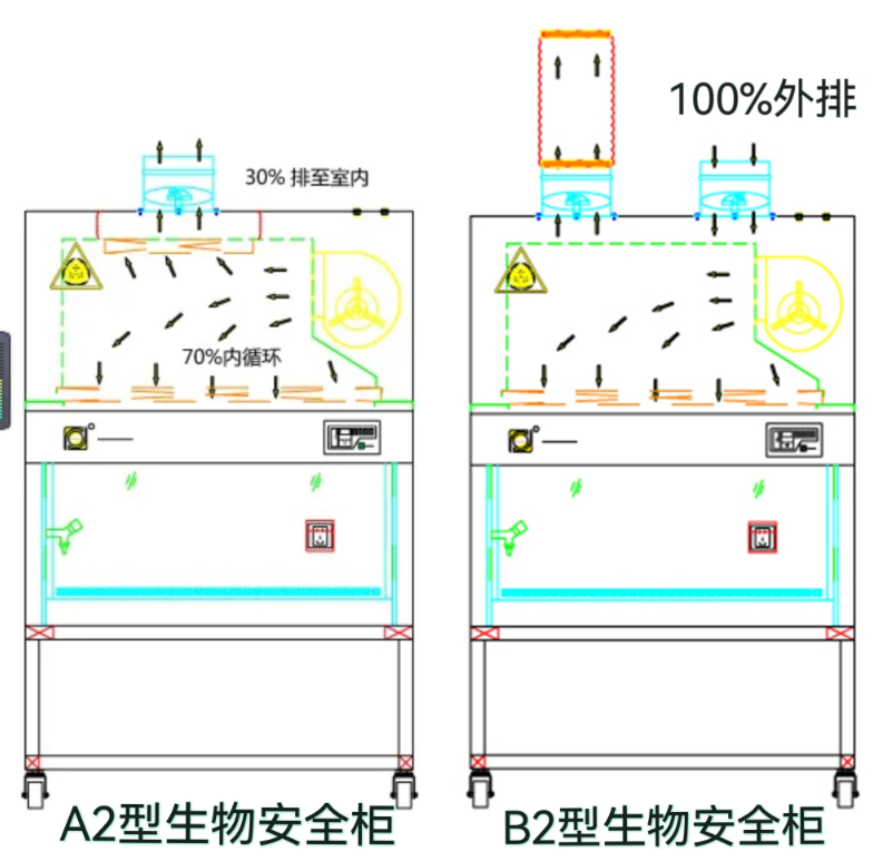 a2型生物安全柜和b2型生物安全柜的区别