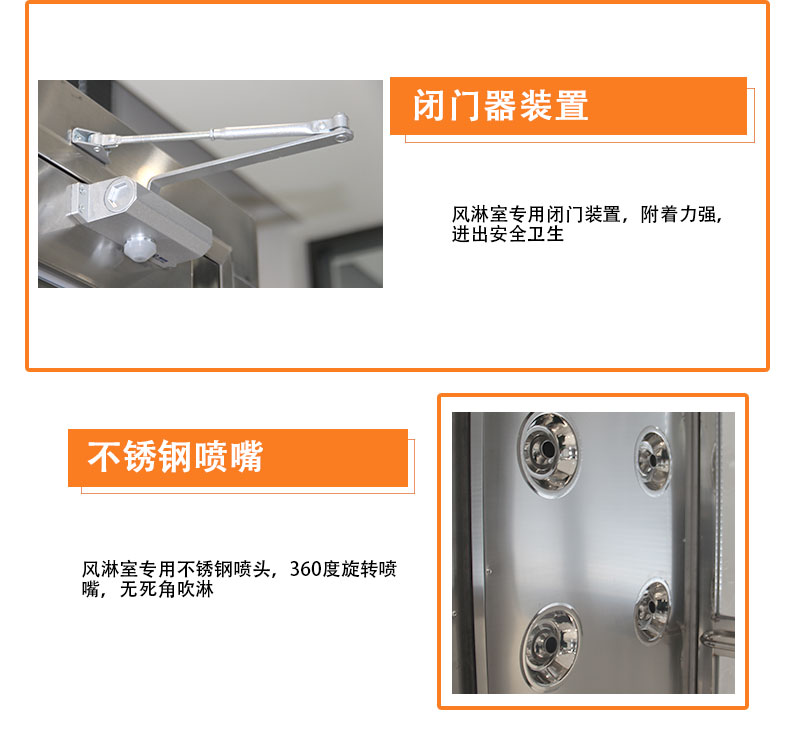 注:喷嘴口单人为6套 双人为9套,可配置成喷淋实行自动控制,通过光电感应实现两门互锁,自动关闭,为人(货)进出提供便利。