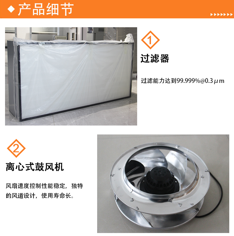 2,箱体和高效过滤器采用分体式设计,安装、更换高效更加简便。