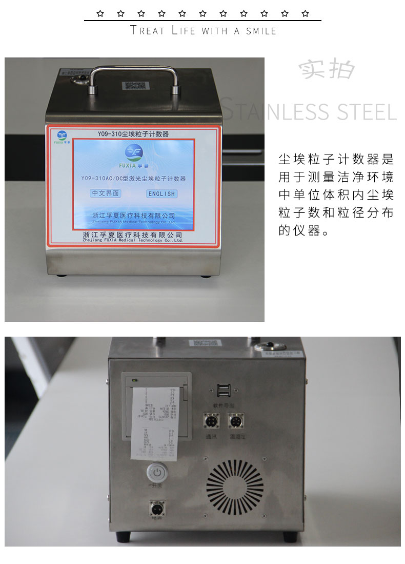 尘埃粒子计数器是用于测量洁净环境中单位体积内尘埃粒子数和粒径分布的仪器。它可广泛应用于为各省市药检所、血液中心、防疫站、疾控中心、质量监督所等权威机构、电子行业、制药车间、半导体、光学或精密机械加工、塑胶、喷漆、、环保、检验所等生产企业和科研部门。符合国家计量总局颁布的JJF1190-2008《尘埃粒子计数器校准规范》规程的技术要求,整机功能采用微电脑控制处理,可直接打印检测结果。