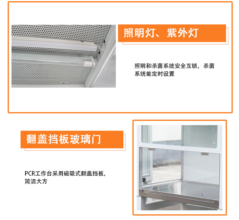 1.PCR专用超净工作台从实验室中抽取空气,经过两级过滤系统进入到操作区,形成一个洁净区域,后排放到实验室中。