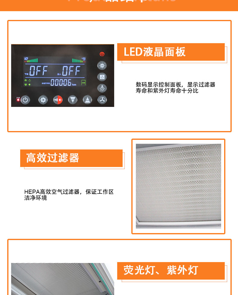 6、 采用LED液晶面板控制,内置紫外灯防护装置,只有在安全门关闭时才能打开。