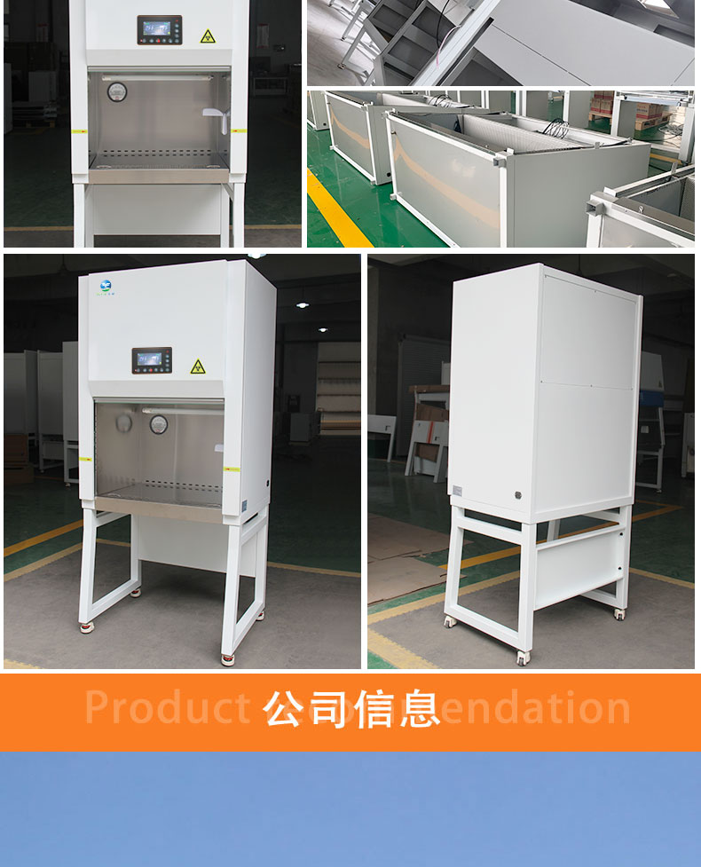 2、上下移动玻璃门,可任意定位,易于操作,并能完全关闭以便杀菌,定位高度限位报警提示。