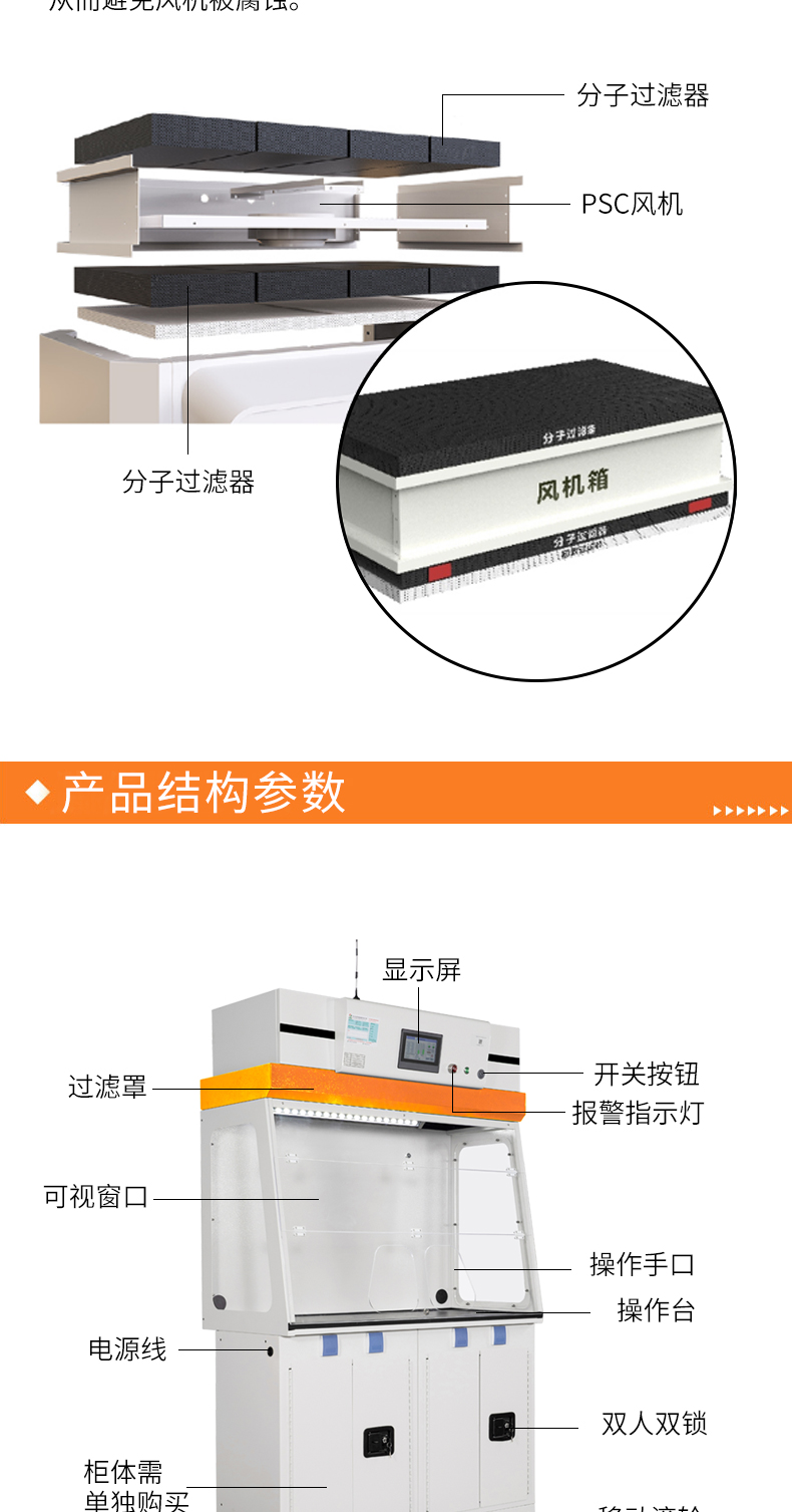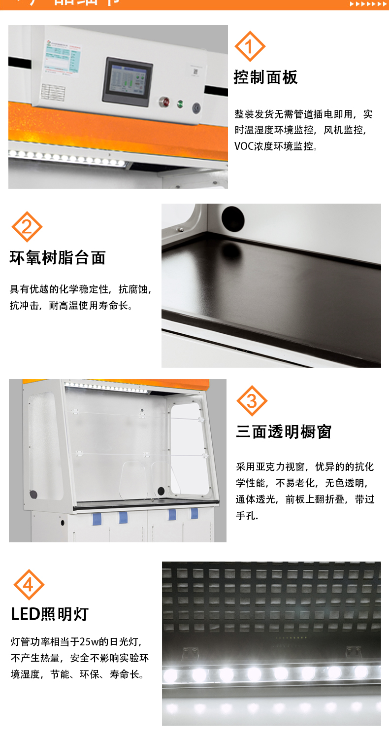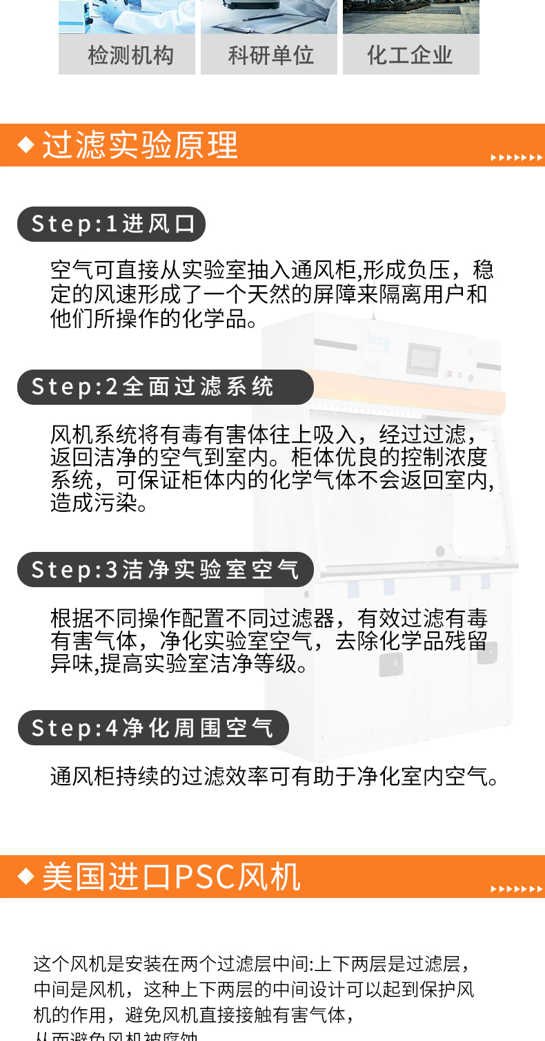 3、先进模块化过滤技术,完全吸附过滤实验产生的有害气体、颗粒粉尘等物质。