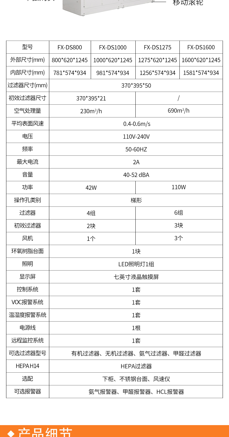 可选过滤器型号: OG:有机过滤器 AG:无机过滤器 AM: 氨气过滤器 FO:甲醛过滤器 HEPA H14:HEPA过滤器 下柜 不锈钢台面 风速仪 可选报警器: 氨气报警器 甲醛报警器 HCL报警器 |