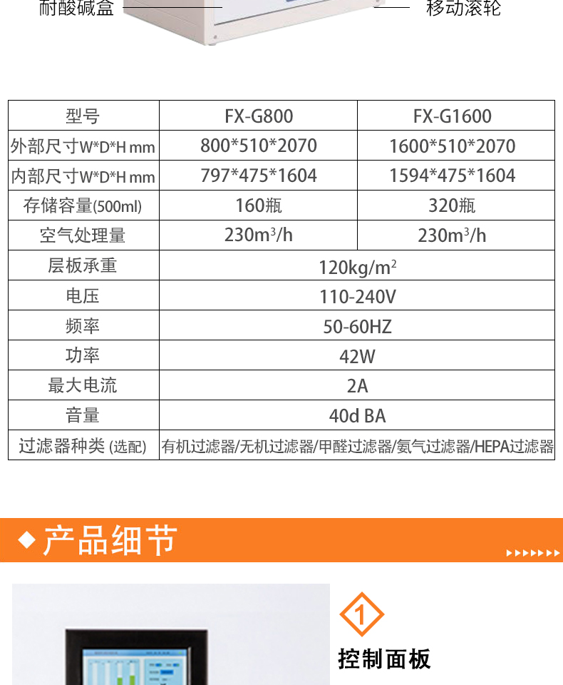 产品特性:1、金属部件:主要材质≥1.2mm镀锌钢板,环氧树脂静电喷涂,覆有耐用防化无铅涂层,保持高光洁度并极大限度的降低腐蚀和湿气的影响。 2、门板:主要材质≥6mm亚克力板,耐候性极佳,优异的抗化学品性能,不易老化,无色透明,通体透光,视觉舒适,美观大方。3、支持SIM卡4G通信,4G通信模块具有国家强制性产品认证证书。4、通过微信客户端可进行远程管理,查阅历史VOC数据、温湿度环境数据,以曲线方式呈现,可查阅历史报警记录,可远程控制风机、报警灯。5、锁具:平面锁+PP挂锁