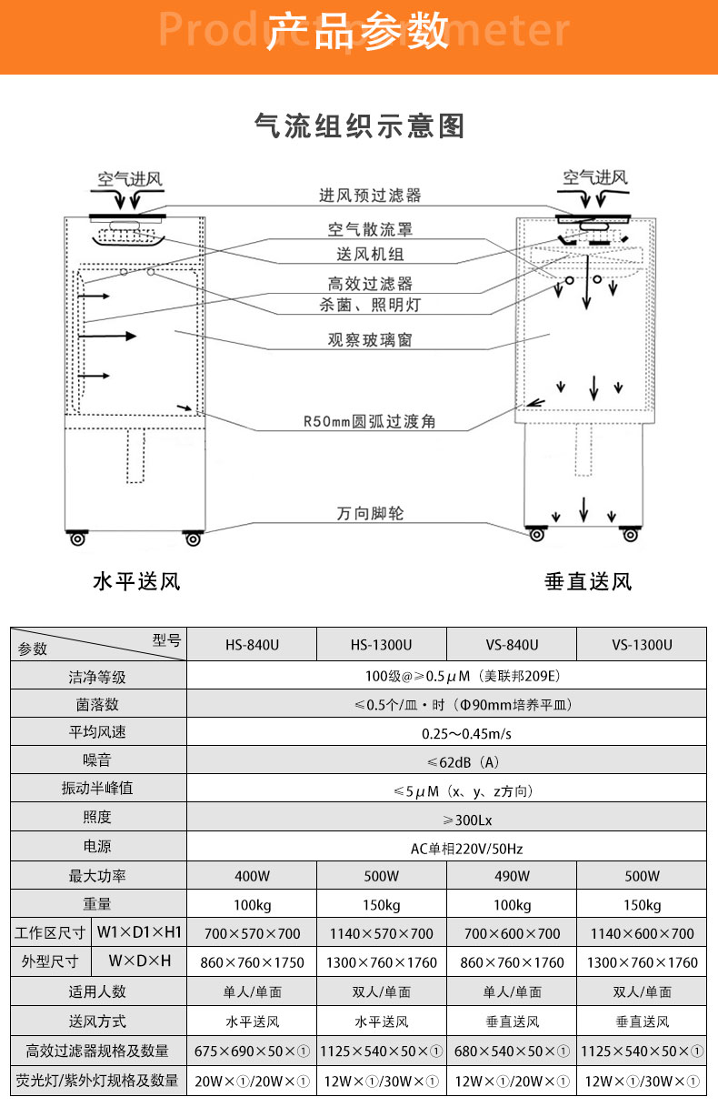 6、配置有HEPA高效空气过滤器,设有初效过滤器进行初步过滤,可有效延长高效过滤器使用寿命