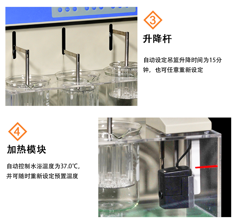 ◎ 2套吊篮,可分别独立进行崩解实验。