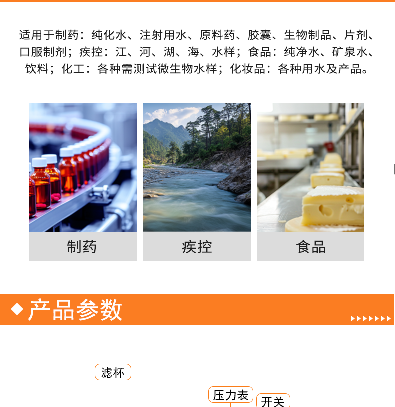 制药:纯化水、注射用水、原料药、胶囊、生物制品、片剂、口服制剂;