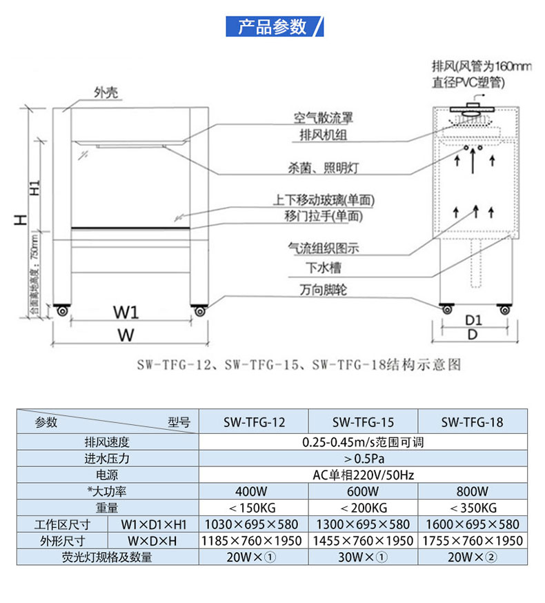 SW-TFG系列通风柜是用于实验室中,需要将有害气体排出,并对实验过程中需要清洗和排污的一种实验室常用设备